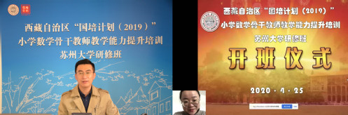 姑苏城中春日暖,雪域高原桃花艳。4月25日,“国培计划(2019)” 西藏自治区小学数学骨干教师教学能力提升培训苏州大学研修班顺利开班。相隔四千余公里的专家和学员借助互联网直播平台同步互动,在教师培训领域实现了“停课不停教,不停学”。