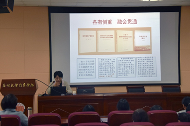 本次动员会还邀请了马克思主义学院副院长、教授朱蓉蓉做 “深入学习党史,坚守初心使命”的辅导报告。朱教授以一条主线,即党的目标;两大理论成果,即毛泽东思想和中国特色社会主义理论体系;三次伟大飞跃,即站起来,富起来,强起来;四件大事,即开天辟地,改天换地,翻天覆地,惊天动地为基本线索,讲述了中国共产党成立至今的百年奋斗历程,并总结了中国共产党百年的成功经验。