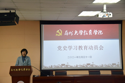 2021年3月31日,教育学院党史学习教育动员会暨辅导报告会在学术报告厅(1005-5536)召开,教育学院全体党员代表参加了本次大会。