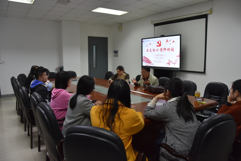 2021年4月1日,教育学院离退休党支部、本科生党支部联队开展了“不忘初心,信仰对话”主题党日活动。离退党支部书记、院关工委副主任黄震老师与本科生支部党员和发展对象进行了谈话与交流。