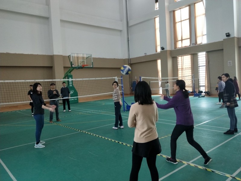 培训中,周老师从排球的基础理论入手,为大家详细介绍了排球的发展现状、运动特点和竞赛规则;接着,周老师就发球、垫球、扣球以及拦网等动作进行了反复的亲身示范和实践指导;最后,周老师还特别针对排球团体比赛的战术进行了讲解。参训的老师们热情饱满,积极投入练习,气氛非常热烈。经过短短一下午的培训,大家就基本掌握了排球的规则要领和动作技能。