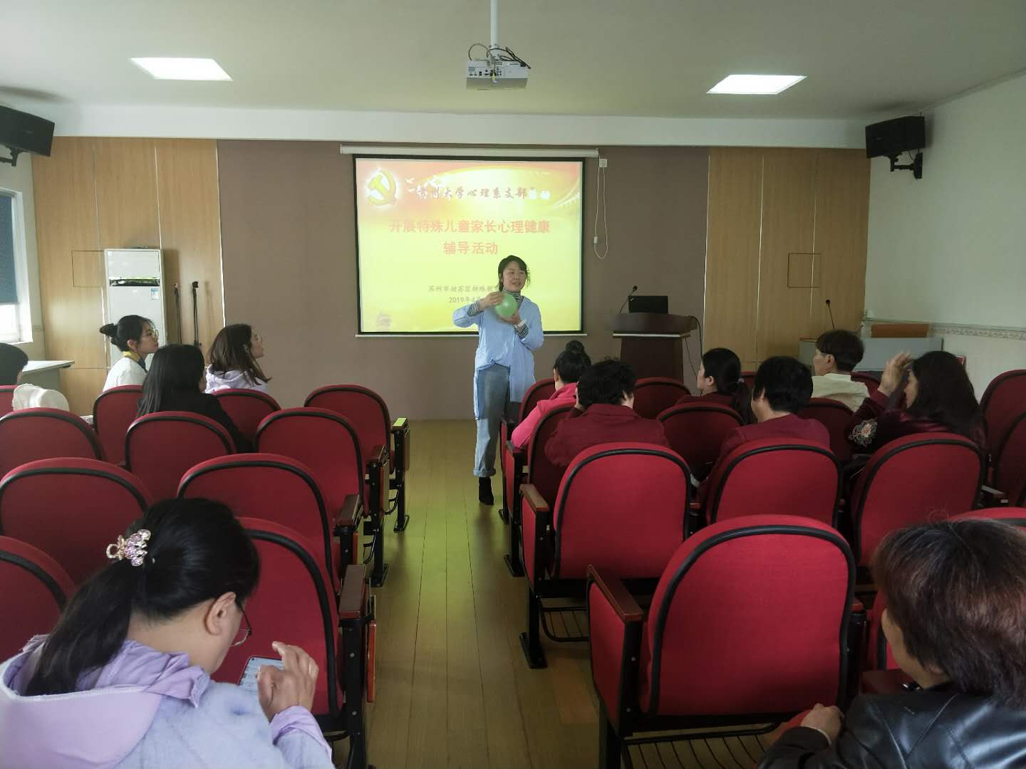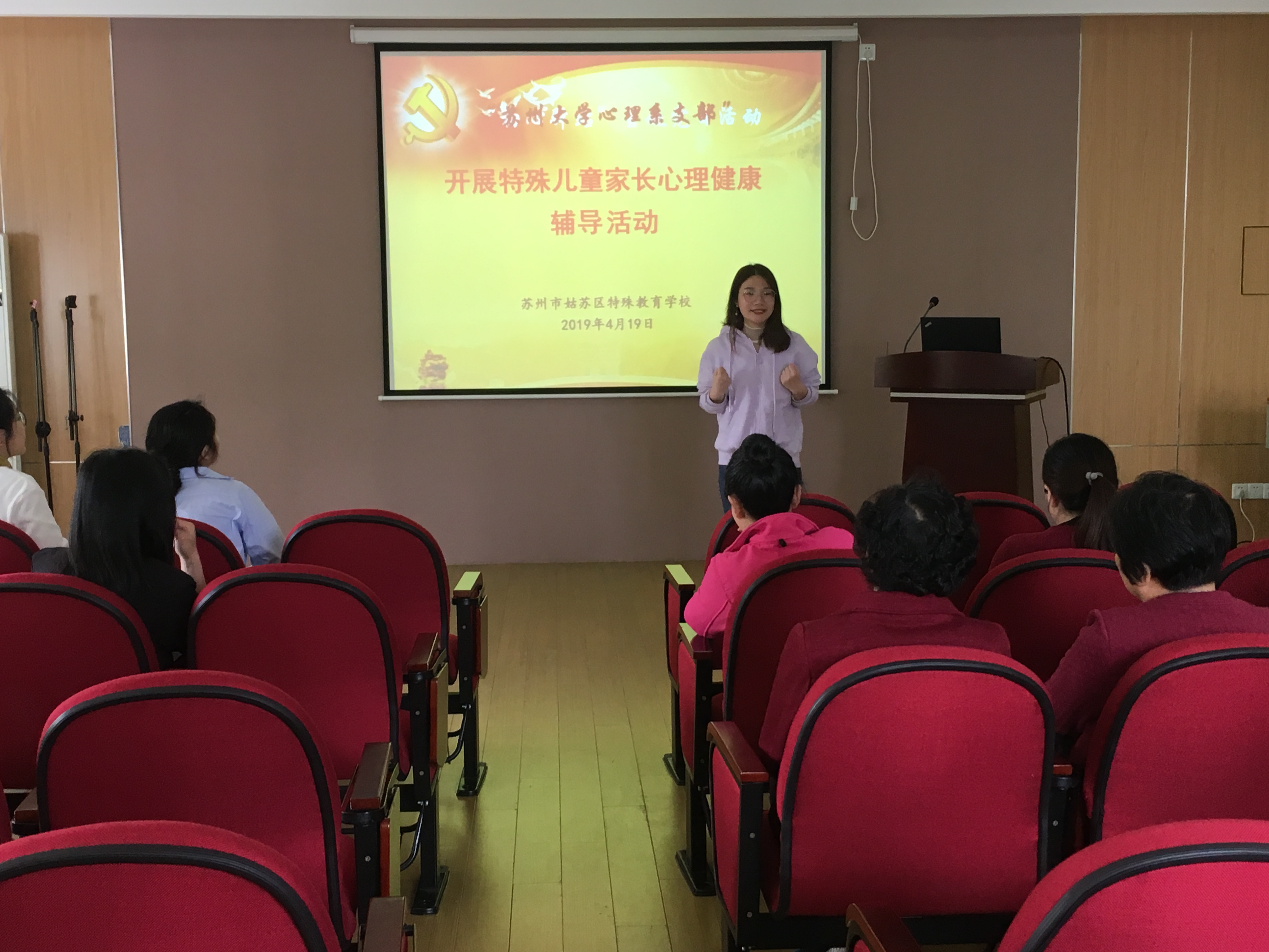 4月19日下午,由苏州大学心理系支部组织的特殊儿童家长心理健康辅导活动在苏州市姑苏区特殊教育学校南校区顺利举行。