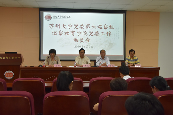根据苏州大学党委统一部署,校党委第四轮巡察第六巡察组于6月3日起对教育学院党委开展巡察工作。6月3日下午,第六巡察组在独墅湖校区1005幢5536室召开巡察教育学院党委工作动员会。按照学校的相关要求,巡察工作动员会由第六巡察组全体成员,教育学院党政班子、党委班子成员、工会主席、科室主任、系主任、教师党支部书记、学生党支部书记、民主党派教师代表、学生代表参加会议。动员会由教育学院党委书记赵阳主持。