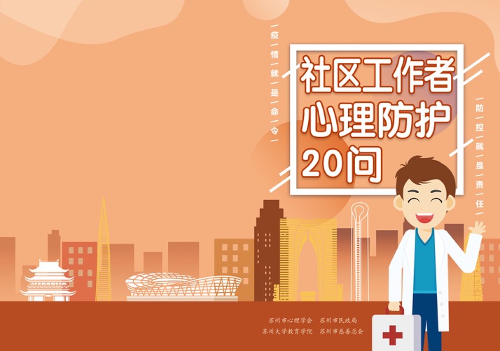 自3月5日动议,在市卫健委、市工信局、市教育局、市公安局、市民政局、苏州大学教育学院和苏州市慈善总会等单位的支持下,苏州市心理学会和市心理健康协会,迅速组织心理学专业人员编写了五本“口袋书”并于4月5日由古吴轩出版社内部出版,出版后,教育学院吴继霞教授和黄辛隐教授共同出席了《抗击新冠疫情心理健康服务手册》出版座谈会。其中吴继霞教授和学会理事、苏州经贸学院李爱娟副教授担任《社区工作者心理防护20问》的主编,黄辛隐教授和市教育局徐洁处长担任《中小学生心理调适20问》的主编。