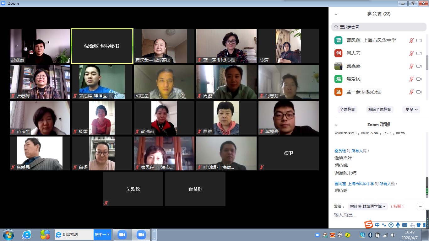 黄辛隐、吴继霞教授以及部分苏州市心理学会骨干成员都是中国心理学会注册心理督导师。苏州市心理学会充分利用这些注册督导师资源开展督导工作,为参加抗疫心理援助的心理咨询师提供工作伦理和工作方式等方面的指导。自1月28日至2月14日以来,五位督导师接受了中国心理学会注册系统的督导师培训2期,都积极报名和集体参与并成为武汉抗疫热线志愿者的督导师。目前,五位督导师都以不同的方式在线为分散在不同地区的热线志愿者进行督导。心理学系党支部黄辛隐教授对山东省聊城市精神卫生中心开设的5条心理热线的心理咨询师进行督导。