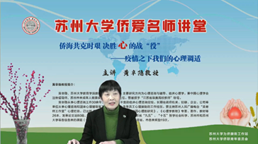2020年4月6日,苏州大学教育学院心理学系党支部黄辛隐教授受学校为侨服务工作站邀请,为广大侨界教职工及侨界朋友举办了一场“侨海共克时艰,决胜心的战 ‘疫’——疫情之下我们的心理调适”心理知识讲座直播活动。