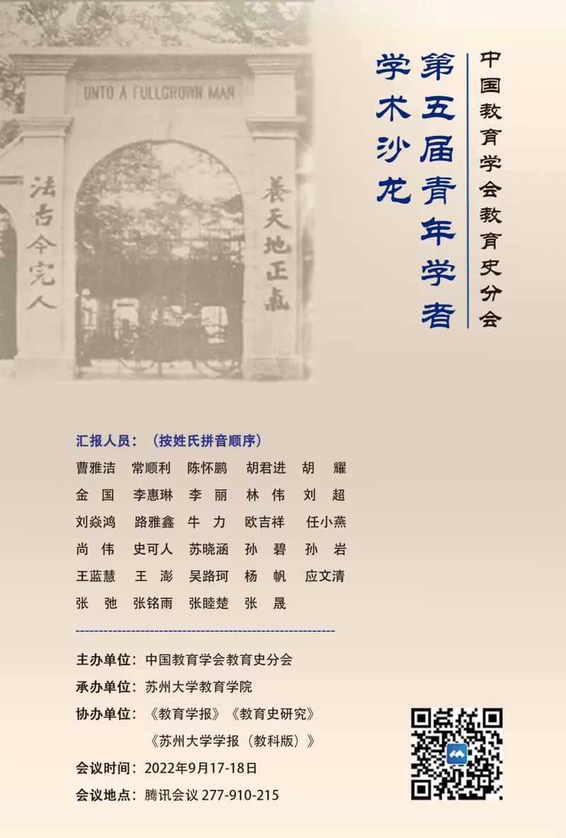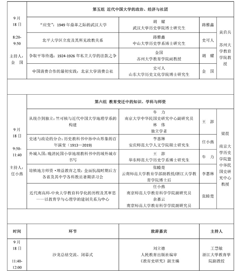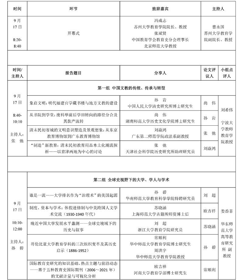 中国教育学会教育史分会第五届青年学者学术沙龙议程[9.17-18]