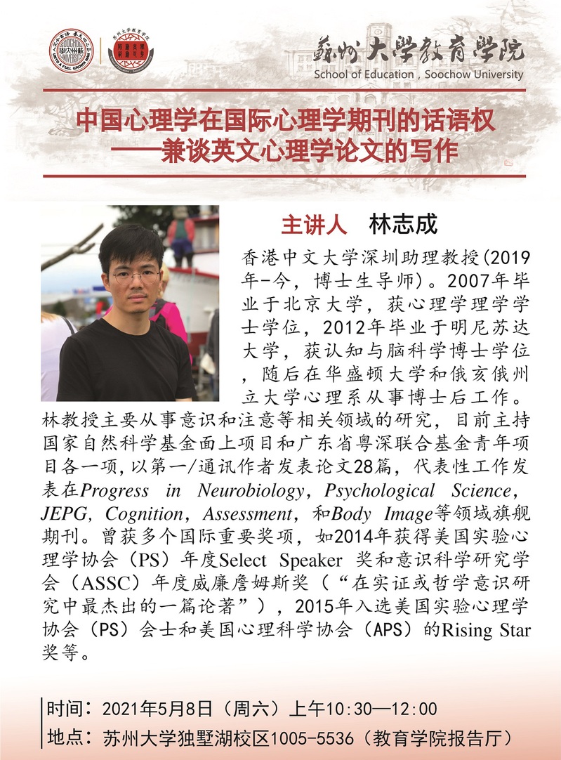 学术报告:中国心理学在国际心理学期刊的话语权——兼谈英文心理学论文的写作[5.8]