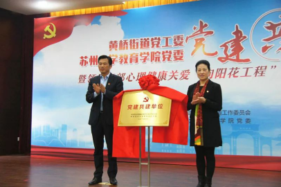 启动仪式当天举行了揭牌仪式,蒋晓虹与胡玉庆共同为“党建共建单位”揭牌,开启了苏州大学教育学院党委与黄桥街道党建共建的新篇章,走出了一条学校与地方党建共建的新路子。