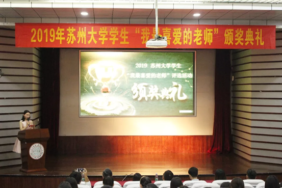 2019年6月20日18:30,由苏州大学学生会、苏州大学研究生会联合发起并组织开展的2019年苏州大学学生“我最喜爱的老师”颁奖典礼,在本部红楼学术报告厅成功举行。一个多月以来,经过学院推举、现场展示、评选投票三个环节,最终评选出2019年苏州大学学生“我最喜爱的老师”。