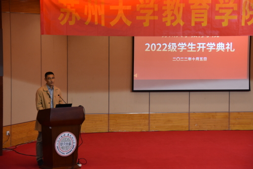 2022级本科生代表、教育技术学(师范)专业张栩豪同学表示身为新时代之青年,应当将个人与国家命运紧密融合,努力成为对国家、对人民、对社会有用的人。2022级研究生代表、教育学专业硕士研究生陈子涵同学引用朱永新教授的话:“争当做一名有学问、会批判的行动家”,表达了勇于担起历史和时代重任的决心。2020级本科生代表、院学生会执行主席施泽宇同学分享了在学院学习生活的经历,鼓励新生要立志高远、脚踏实地,担起青年学生的重担。2021级研究生代表、院研究生会执行主席胡星星同学分享了读研期间的经验和感悟,希望新生珍惜宝贵的学习时光,潜心学术,秉承科学的研究态度,要有家国大爱,把远大理想和现实联系在一起,并祝愿大家在独墅湖畔书写精彩的人生故事。