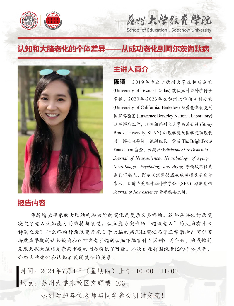 学术报告:认知和大脑老化的个体差异——从成功老化到阿尔茨海默病[7.4]