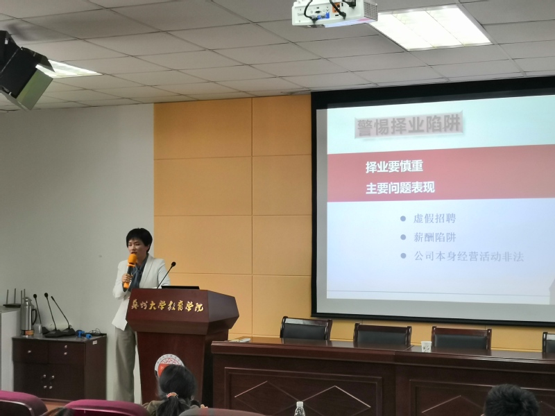 201958日下午330分,苏州大学教育学院就业指导讲座之“大学生在就业前应该了解的一些法律知识”在1005-5536举行。本次讲座特邀江苏显允律师事务所的李克林律师主讲,我院2016级全体学生参加了此次讲座。