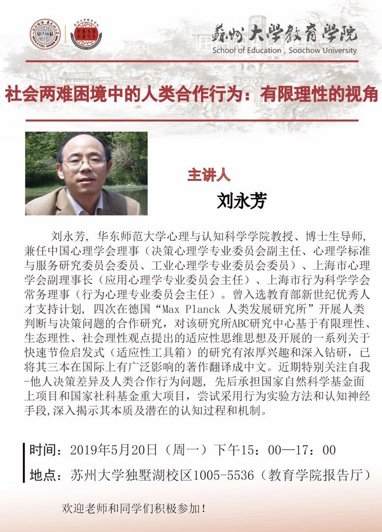 学术报告:社会两难困境中的人类合作行为:有限理性的视角[5.20]