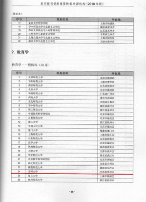 中国人民大学人文社会科学学术成果评价研究中心根据2018年度复印报刊资料学术系列刊的全文转载数据,从转载量、转载率和综合指数3个量度,分别进行了期刊排名和机构排名。依据该评选结果,按学科一级机构数量统计,教育学入选机构58家,我校排名为24位;按高等院校所属机构数量统计,教育学入选机构39家,我院排名第21位。