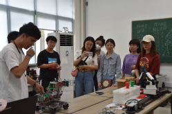 在机电工程学院学生党员王开金的带领下,学生党员前往参观机电工程学院实验室。王开金在介绍作品和模型时,将理论与实物相结合,在展示操作中详细介绍了工作原理。教育学院学生党员们通过近距离观察,学习了如何使用3D打印机和激光打印机,并加深了对机电工程学院的了解。讲解结束后,教育学院学生党员收到了机电工程学院赠送的激光打印纪念徽章。