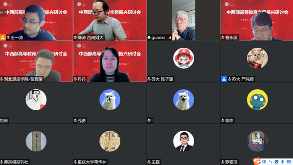2022年3月18日,苏州大学教育学院、《苏州大学学报(教育科学版)》和《重庆高教研究》联合举办“中西部高等教育全面振兴研讨会”。全国政协委员、中国高教学会副会长管培俊、国务院发展研究中心社会发展研究部研究员佘宇、云南省教育科学研究院原院长李慧勤、陕西师范大学教育学部特聘教授赵丹、重庆大学工程科教战略研究中心研究员蒋华林、西南财经大学教育管理与政策研究所博士生导师陈涛、湖北恩施学院副校长曾繁荣、《重庆高教研究》主编蔡宗模等专家参加研讨会。苏州大学教育学院副院长曹永国教授、院长助理王一涛教授先后主持会议。