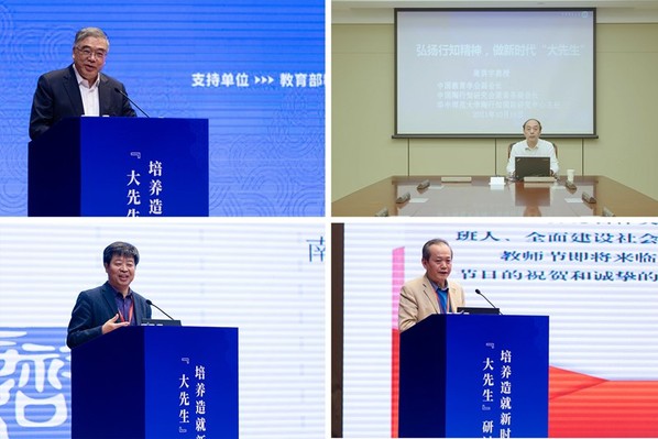 “人民教育家”于漪特别为研讨会录制了视频。她以“大先生”为关键词,指出“思想自信”“实践自觉”是新时代教师走向“四有”好老师、走向“大先生”的根本要求。广大年轻教师要放出眼光、站稳中国立场,做学生为学、为事、为人的示范,促进学生成长为全面发展的人。著名教育家、中国教育学会名誉会长顾明远以做陶行知先生的“小学生”为主题,讲述了如何向陶行知先生学习,并对陶行知教育思想作了丰富的阐释。勉励广大教师向标准看齐,向榜样学习;做“大学问”,怀“大爱心”,做新时代的“大先生”。