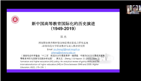 沙龙下半场,郑杰博士在自己多年思考和研究的基础上分享了主题为“中国高等教育国际化的历史演进”的报告,通过对政策史料和已有学术研究的梳理,从社会学和历史学的视角探究了新中国高等教育国际化(1949-2019)的政策演进,讨论了新自由主义对中国国家形成、中国高等教育演进的影响。