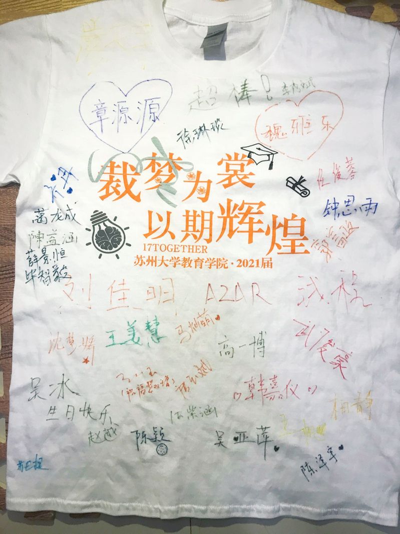 最后,同学们拿出了毕业T恤与毕业手提袋,为彼此签名与留言,并互道毕业快乐。在愉快、温馨的氛围中,此次活动圆满落幕。