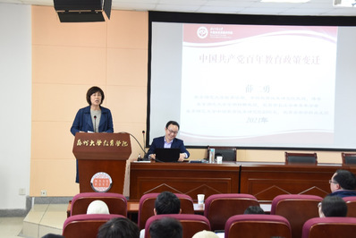4月9日,为深入学习贯彻习近平总书记在党史学习教育动员大会上的重要讲话精神,教育学院结合学院专业特色,特邀请北京师范大学京师特聘教授、青年长江学者、北京师范大学中国教育政策研究院副院长薛二勇教授做党史学习教育专题讲座,教育学院党委书记赵阳,党委副书记、副院长朱晨花,党委委员、副院长曹永国出席了讲座,学院教师党员代表以及学生党员代表聆听讲座。