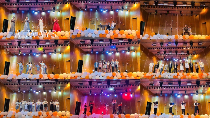 随后,晚会节目依次精彩呈现。开场舞《Boom Clap》,激情洋溢,点燃全场。研究生合唱《我们都是追梦人》,给毕业生们送去温暖的祝福与鼓励。毕业生的小品《老同学》欢闹有趣。歌曲串烧《亲爱的干杯》,歌声悠扬,唱出毕业的心声。舞蹈《kilakila》,舞姿飒爽,跳出青春的激情。《今宵多珍重》的表演者身着旗袍,将美好的祝愿送给即将奔赴前程的毕业生们。《天路之恋·毕业季》舞台剧精彩,演出毕业生离别的不舍,亦有对于青春的怀恋。毕业生们准备的“彩蛋”,献给亲爱的辅导员老师。师生表演的舞蹈串烧《夏日狂欢》亦是充满活力,一展教院风情。诗朗诵《致》道出了毕业生们的心声,相信理想的光芒,一定能够照亮前方。在视频《毕业时光机》后,2017级全体毕业生登台合唱《昨日青空》,清歌梦挽,毕业情深,至此,晚会也圆满结束。