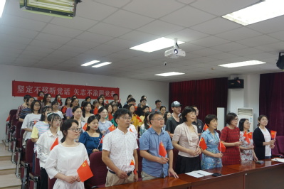 伴随着《歌唱祖国》的熟悉旋律,师生党员共同挥舞党旗,祝贺中国共产党成立100周年,祝福伟大祖国更加繁荣昌盛!