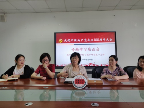 大会直播结束后,学院党委书记赵阳,党委副书记、副院长朱晨花,党委委员陈贝贝,辅导员金利妍分别与各支部党员召开庆祝中国共产党成立100周年大会的专题学习座谈会。