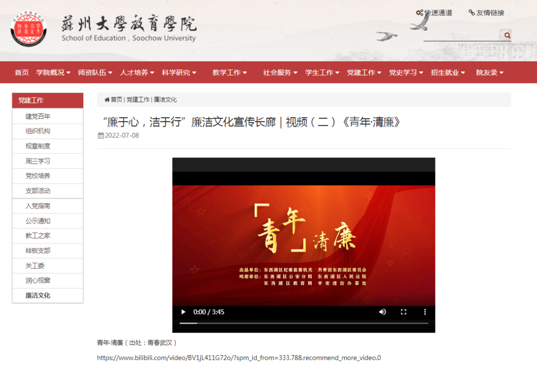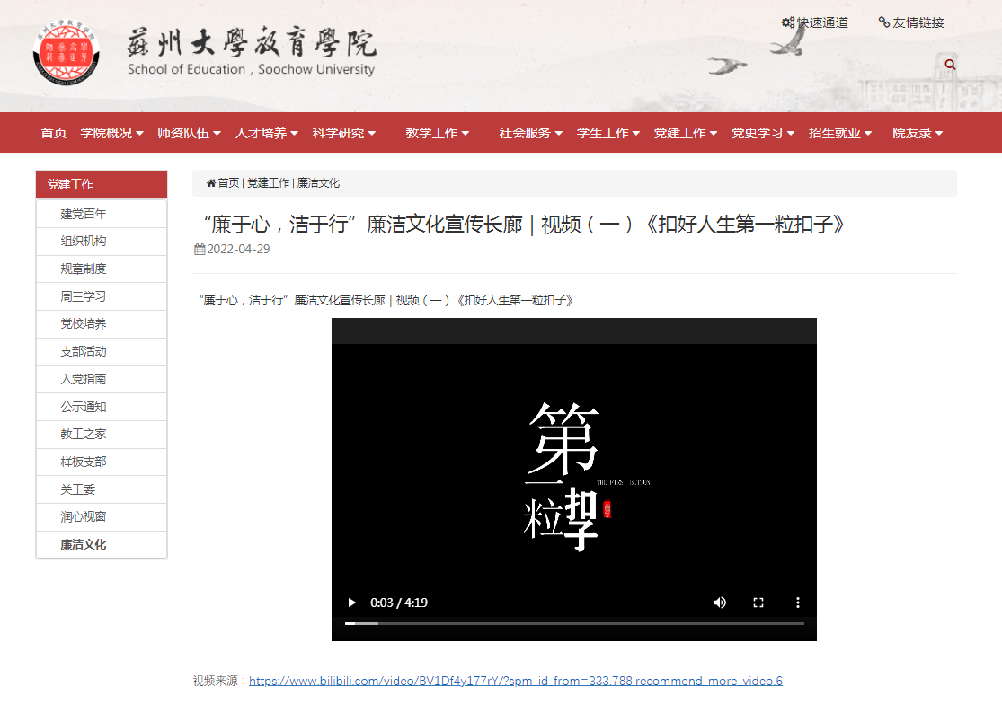 教育学院始终把廉洁文化建设摆在突出位置,廉洁文化网络宣传长廊将政治建设、思想建设、作风建设、纪律建设与社会公德、职业道德、廉洁文化等内容有机结合,使其成为弘扬正气、正心修身、警醒师生、涵养文化的网络宣传教育阵地,让广大师生在浓厚的廉洁氛围中受到熏陶和洗礼,真正把纪律意识、法治意识和廉洁理念内化于心、外化于行。