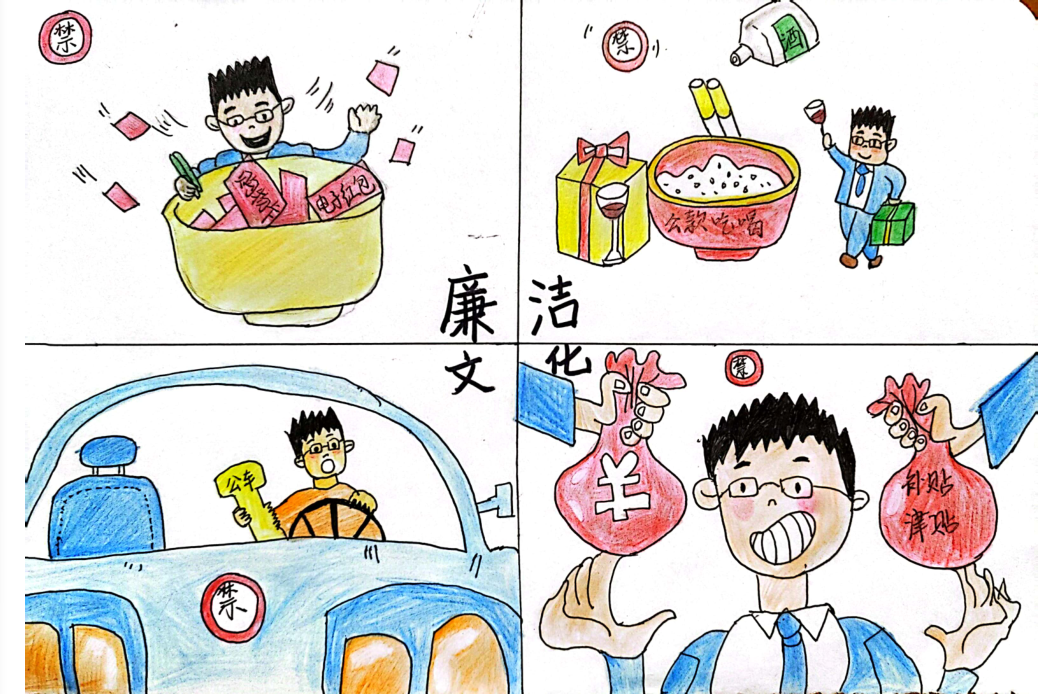 此次活动吸引了广大学生的积极参与,同学们围绕主题,展开想象,用心设计出了一份份图文并茂、色彩缤纷的漫画及手抄报作品。无论是反对公款吃喝、公车私用、收受贿赂的行径,还是讽刺金钱为上、玩火自焚的官员,无论是歌颂出淤泥而不染的莲花,还是褒扬“一钱太守”“陶母退鱼”的廉洁史事,无不诠释着同学们对廉洁的理解,以及对贪腐深入人心的痛恨与憎恶。