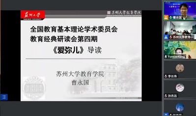 2022年12月10日18:30至22:00,全国教育基本理论学术委员会第四期“教育经典研读会”成功举办。本期研读会由全国教育基本理论学术委员会主办,苏州大学教育学院承办,《教育研究》杂志社提供学术支持。活动采用线上线下相结合的方式举行,河南省教育家书院同步直播,围绕教育学经典著作《爱弥儿——论教育》展开深入的学术对话。全国教育基本理论学术委员会主任委员李政涛教授、副主任委员于伟教授、冯建军教授、刘铁芳教授、孙杰远教授等以及学术委员会各位委员,全国教育学界同仁共6.7万人相聚云端,共同参与本次经典研读会。本次活动由导读由全国教育基本理论学术委员会学术委员苏州大学教育学院曹永国教授引读,与谈及呼应人员为中国教育学会教育哲学分会副理事长金生鈜教授、全国教育基本理论学术委员会副主任康永久教授、中国教育学会教育哲学分会理事李长伟教授、全国教育基本理论学术委员肖绍明教授。活动共分为开幕式、引读与呼应以及活动总结三个部分。