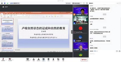 全国教育基本理论学术委员会学术委员、华南师范大学教育科学学院肖绍明教授也进行了呼应。肖教授以“卢梭自然状态的证成和自然的教育”为主题,进行了严密逻辑的论证,共分为四个部分。首先是从自然状态到自然教育的推论,而后是自然状态的证成,认为自然教育是思想实验与行动实验相结合的教育实验,其中也涉及了“身体现象学”与“情爱现象学”。此外,他还阐述了自然状态的“卢梭问题”及其反思,包括自然状态的二元对立问题、独一性问题、主体问题以及连续性问题。最后肖教授肯定了卢梭的教育思想对于现代教育学的启发与贡献。