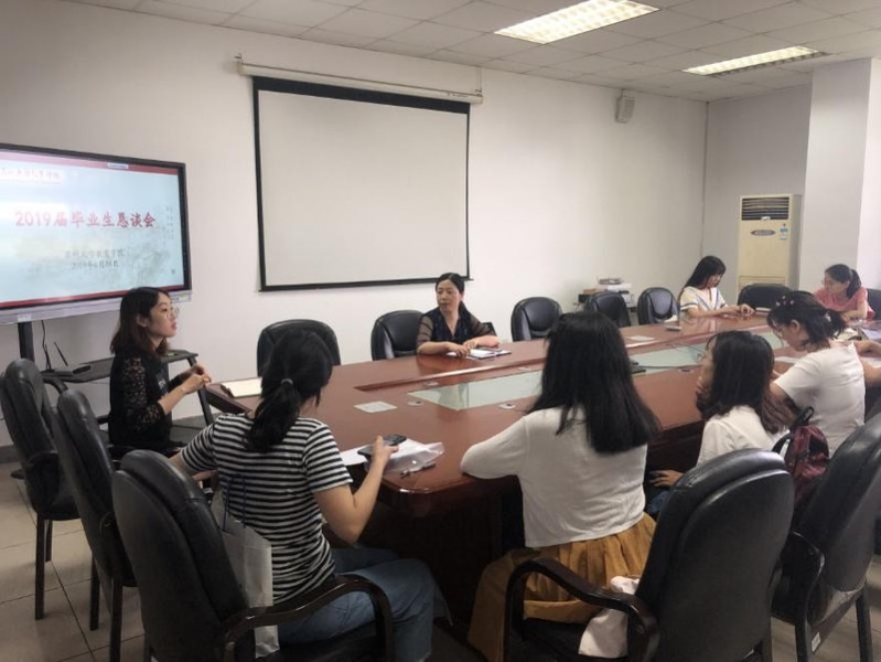 2019年6月24日下午教育学院在1005-5542举办了2019届毕业生恳谈会,出席本次会议的有学院党委副书记、副院长朱晨花,院团委书记、研究生辅导员张旻蕊,本科生辅导员金利妍以及2019届本科生、研究生毕业生代表。