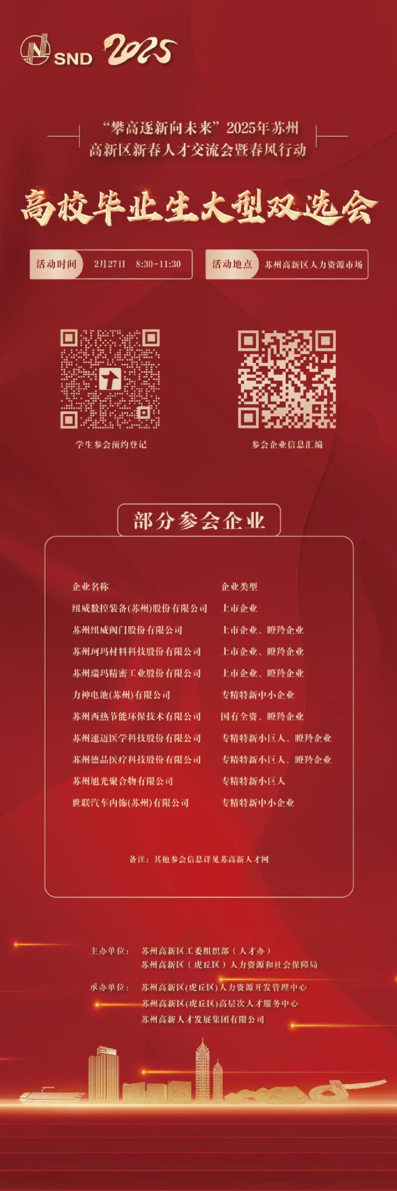 “攀高逐新向未来”2025年苏州高新区新春人才交流会暨春风行动