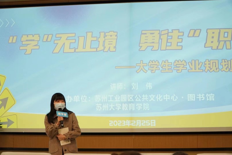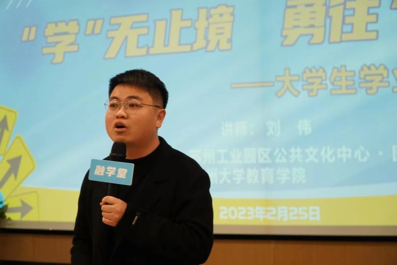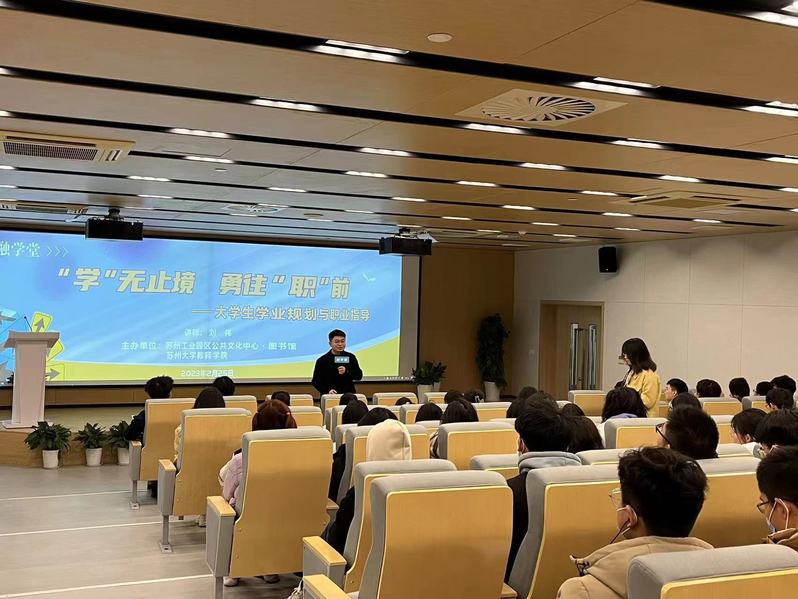 2023年2月25日14:00,苏州大学教育学院在苏州工业园区图书馆沃森报告厅举行“‘学’无止境,勇往‘职’”——大学生学业规划与职业指导主题讲座。本讲座系苏州大学教育学院“开学第一课”系列活动的第一讲,旨在帮助学生尽快适应疫情防控政策变化后的新学期,引导学生结合自身成长成才的发展需要做好学业生涯规划,鼓励同学们“早立志、立长志、立大志”,追求卓越,逐梦未来。