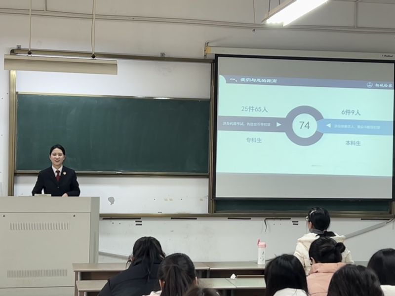 讲座开始前,苏兴亚介绍了本次讲座的目的和主讲人张雨绮检察官,希望同学们在认真听讲中能够学会如何正确行使自己的权利,维护自己的合法权益,争当“学法、知法、守法、用法”的新时代好青年。